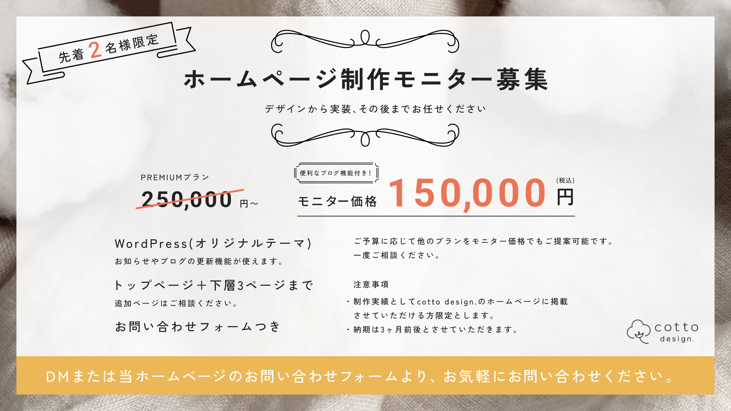 Webサイト制作のモニターさまを募集しております。