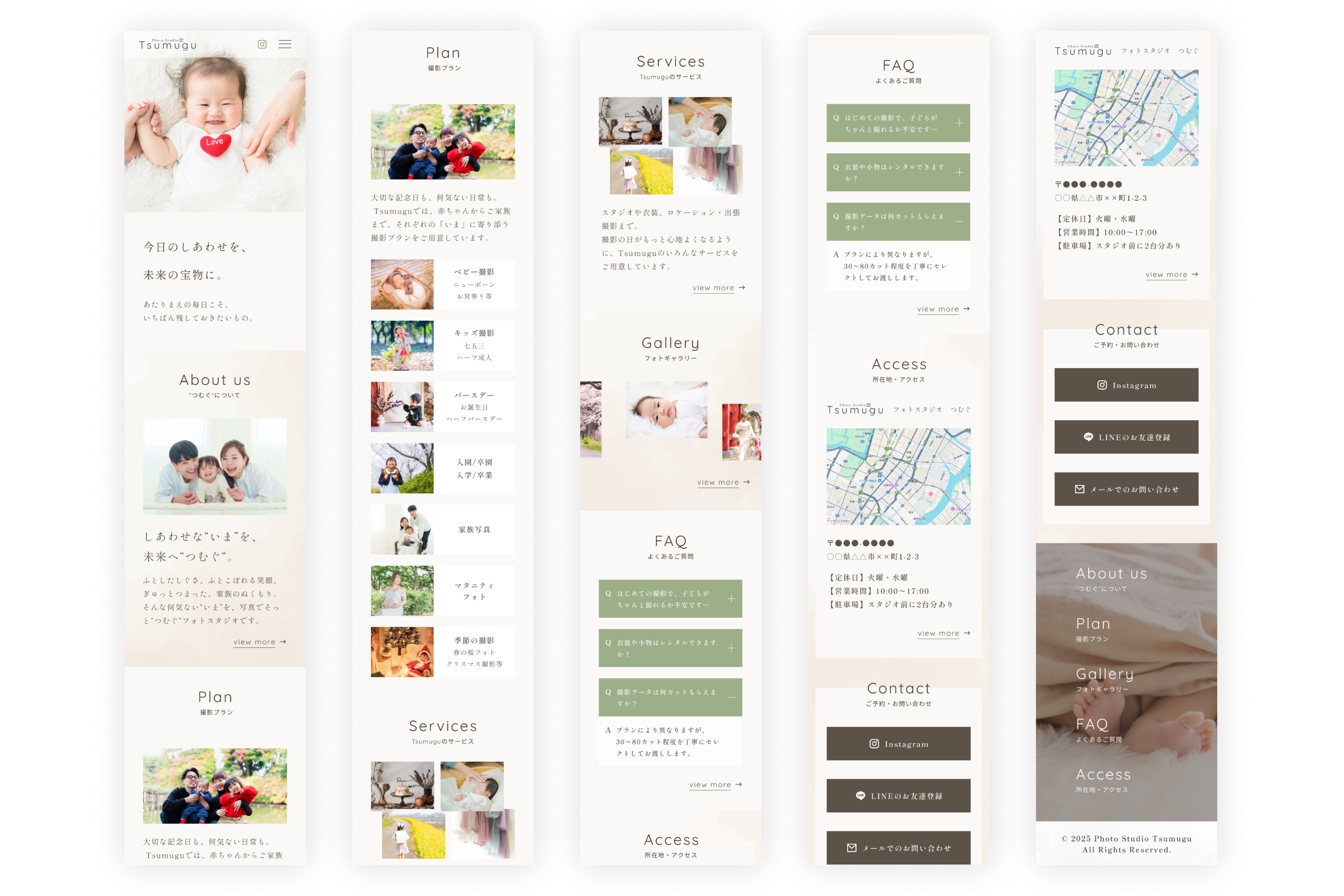 自主制作として制作した、家族写真スタジオ「Photo Studio Tsumugu」のWebデザインです。